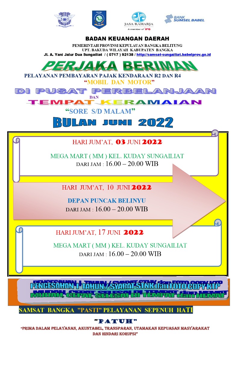 Jadwal Samling, Samsat Setempoh & Perjaka Beriman Samsat Bangka Bulan Januari 2023.#PATUHSAMSATBANGKA