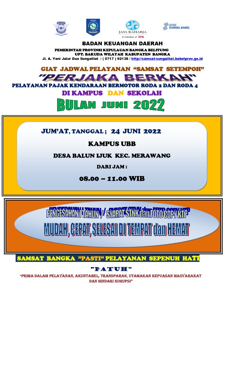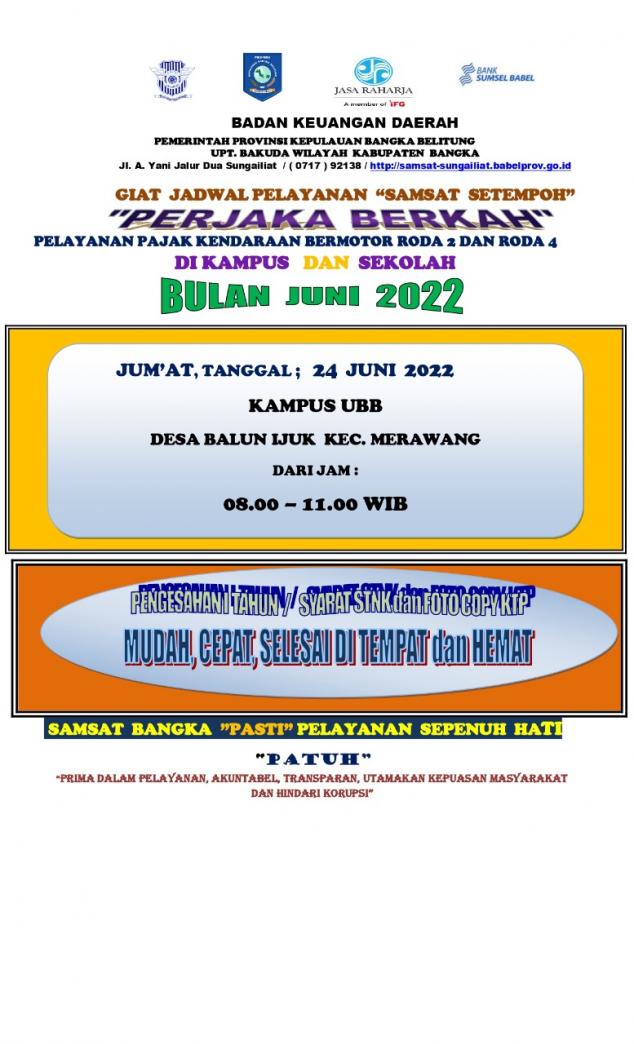 Jadwal Kegiatan Perjaka Berkah Samsat Bangka Bulan Juni 2022.#PATUHSAMSATBANGKA