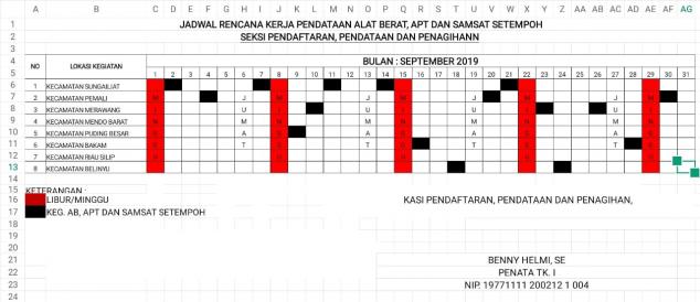Jadwal Rencana Kerja Pendataan Alat Berat, APT & Samsat Setempoh Seksi Penagihan UPT.Bakuda Wil.Bangka Bulan September 2019