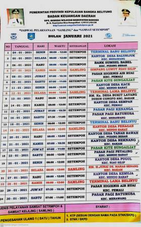 Jadwal Samling Dan Samsat Setempoh Samsat Bangka Bulan Januari 2021