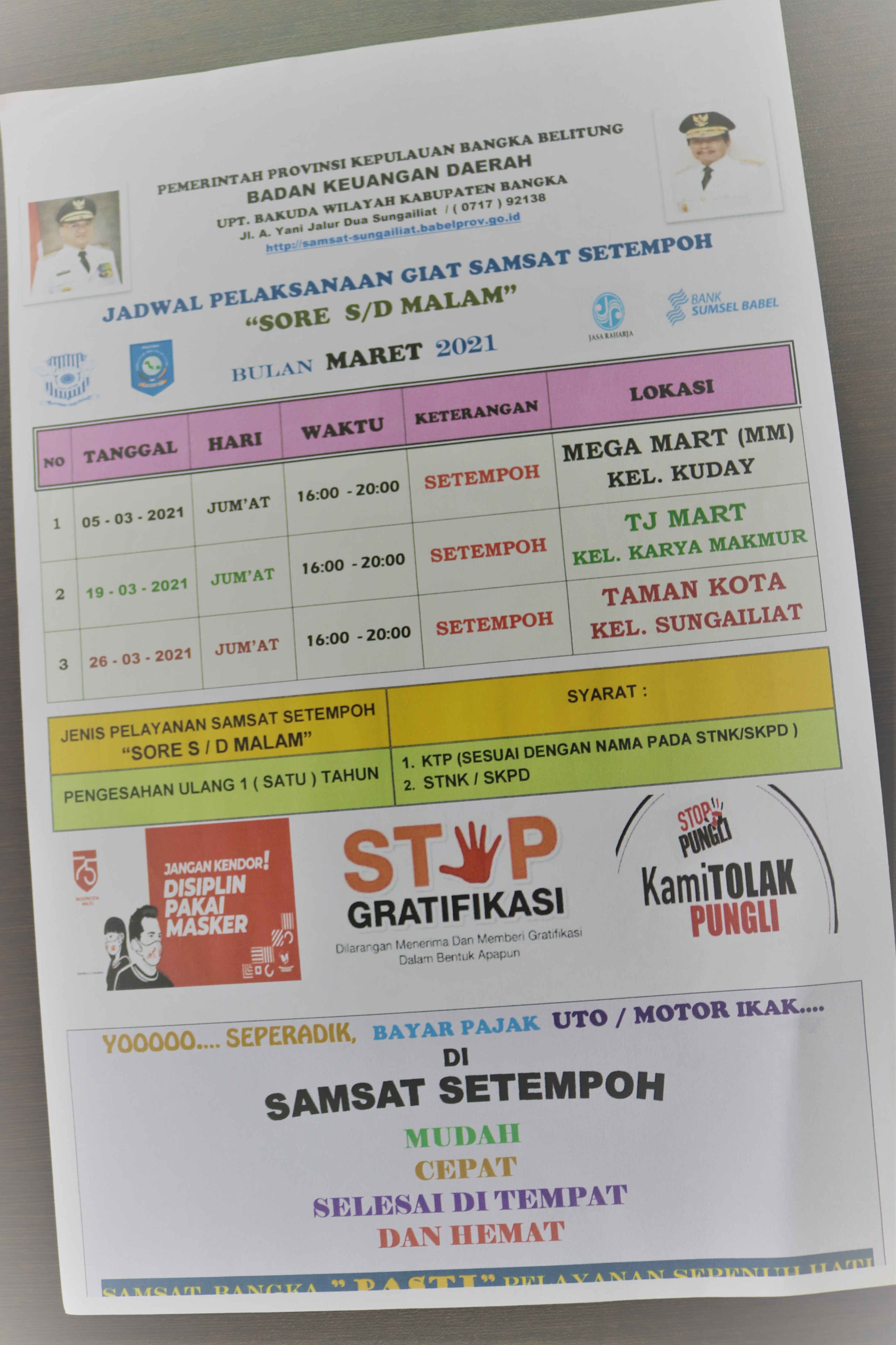 Jadwal Kegiatan Samsat Keliling & Samsat Setempoh Samsat Bangka Bulan Maret 2023.#SamsatSungailiatPASTI