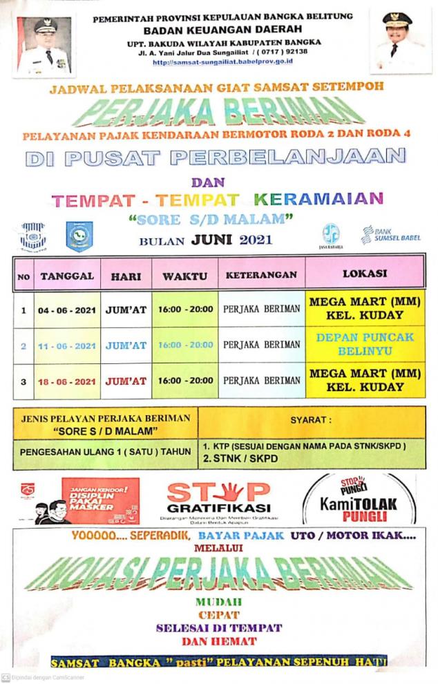Jadwal Samsat Setempoh PERJAKA BERIMAN Samsat Bangka