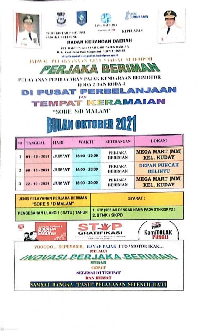 Jadwal Samsat Setempoh Perjaka Beriman Samsat Bangka Bulan Oktober 2021