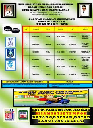 Jadwal Samsat Setempoh Sore s/d Malam Februari 2020