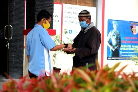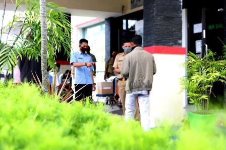 Pegawai Samsat Bangka/UPT.Bakuda Babel Wilayah Kabupaten Bangka Melayani Masyarakat Yang Membayar Pajak Kendaraan Bermotor Roda 2 Dan Roda 4 Teliti Ulang 1 Tahun Di Depan Pintu Masuk Kantor Samsat Bangka Melalui Program Samsat Setempoh, Selasa, 12 Mei 2020
