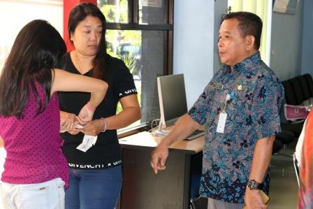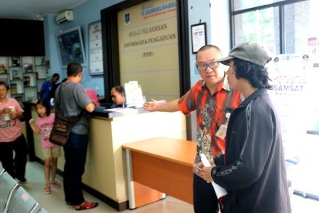 Kepala UPT. Bakuda Babel Wilayah Kabupaten Bangka Menyapa Dan Memberikan Informasi Seputar Kegiatan Pemutihan Di Ruang Pelayanan Samsat Sungailiat, Sabtu, 04 Januari 2020