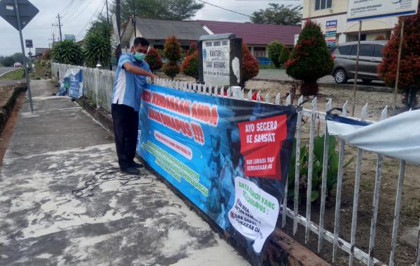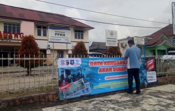 Kegiatan Publikasi Pemasangan Spanduk Penghapusan Data Kendaraan Bermotor Apabila Kendaraan Tidak Melakukan Perpanjangan STNK Selama 2 Tahun Berdasarkan UU Nomor : 22 Tahun 2009 Pasal 74 Di Kecamatan Merawang Kabupaten Bangka, Selasa, 20 September 2022.#P