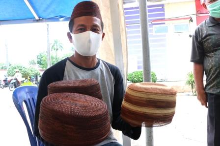 Biasanya kegiatan menjual kopiah resam dilaksanakan Bapak satu anak ini seharian namun bantuan langsung tunai dari pemerintah harus diambilnya di kantor pos wilayah kecamatan Kelapa Kabupaten Bangka Barat. Menjual kopiah resam bukan hal baru bagi Samsudin, kegiatan ini sudah dilakoni dia selama 11 Tahun.