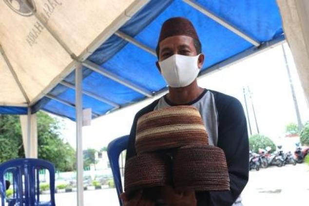 Sebelum tiba waktu sholat Dzuhur siang ini, Samsudin, penjual kopiah resam yang berdomisili di Desa Air Bulin Kabupaten Bangka Barat Provinsi Kepulauan Bangka Belitung akan menyelesaikan tugasnya menjajakan aneka kopiah resam di wilayah Sungailiat.