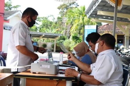 Pandemi Covid-19 tidak berarti pekerjaan dalam melayani masyarakat berhenti sampai disini. Samsat Bangka sebagai Unit Pelayanan Teknis Badan Keuangan Daerah Provinsi Kepulauan Bangka Belitung Wilayah Kabupaten Bangka tetap menempatkan pelayanan sebagai menu utama dalam implementasi tugas dan pekerjaan sebaga Aparatur Sipil Negara Pemerintah Provinsi Kepulauan Bangka Belitung. Penerapan Aturan Keprotokolan Kesehatan dalam mengantisipasi penyebaran Virus Corona Disease 19 bersinergi dengan pelaksanaan pelayanan prima kepada masyarakat di UPT.Bakuda Provinsi Kepulauan Bangka Belitung Wilayah Kabupaten Bangka/Samsat Bangka. Penerapan Aturan Keprotokoan Kesehatan dapat kita lihat baik di loket utama pelayanan, Samsat Setempoh Di Loket Tambahan Samsat Bangka, Samling Samsat Bangka maupun Samsat Setempoh Reguler Bulanan Samsat Bangka. Kepala UPT.Bakuda Provinsi Kepulauan Bangka Belitung Wilayah Kabupaten Bangka, Yeri,S,Sos selalu memberikan pengarahan kepada pegawai Samsat Bangka agar tetap konsisten dalam menerapkan aturan keprotokolan kesehatan baik bagi pegawai Samsat Bangka maupun masyarakat yang hadir untuk membayar pajak di Samsat Bangka. Kegiatan Samsat Setempoh Di Loket Tambahan Samsat Bangka, Rabu, 02 Desember 2020.