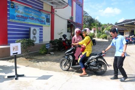 Pegawai Samsat Sungailiat Melayani Masyarakat Di Bagian Parkir Kendaraan Roda 2 Samsat Sungailiat, Rabu, 20 November 2019