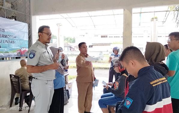 Penanggung Jawab Jasa Raharja Kabupaten Bangka, Bpk. Meidyansah, A.Md Melaksanakan Sosialisasi Undang Undang Nomor 22 Tahun 2009 Pasal 74 Tentang Penghapusan Data Kendaraan Bermotor, Apabila Kendaraan Tidak Melakukan Perpanjangan STNK Sekurang-Kurangnya 2