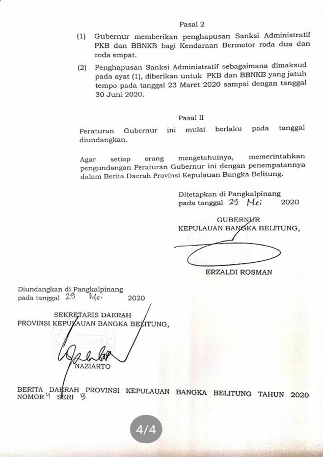Peraturan Gubernur Kepulauan Bangka Belitung Nomor 38 Tahun 2020