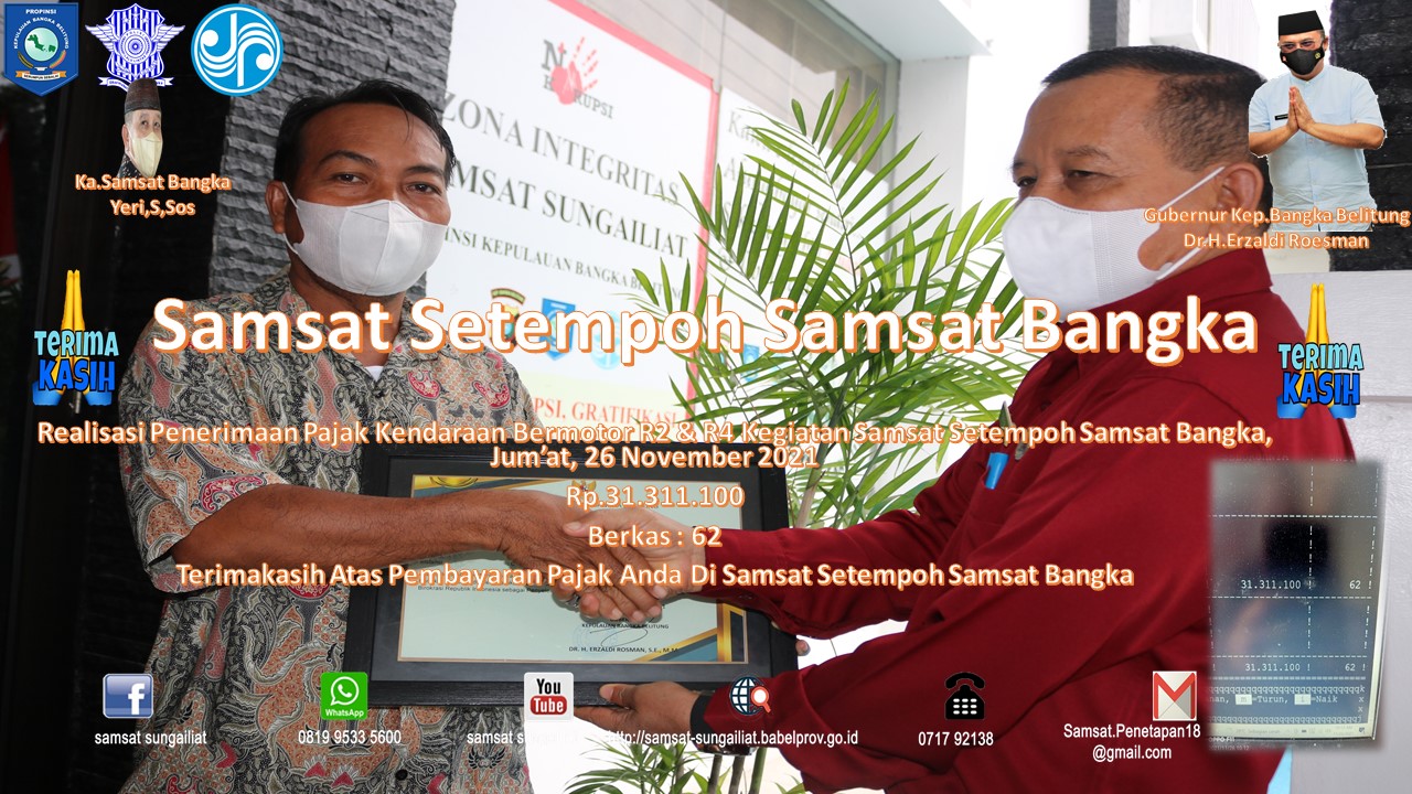 Realisasi Penerimaan Pajak Kendaraan Bermotor R2 & R4 Kegiatan Samsat Setempoh Samsat Bangka, Jum'at, 26 November 2021