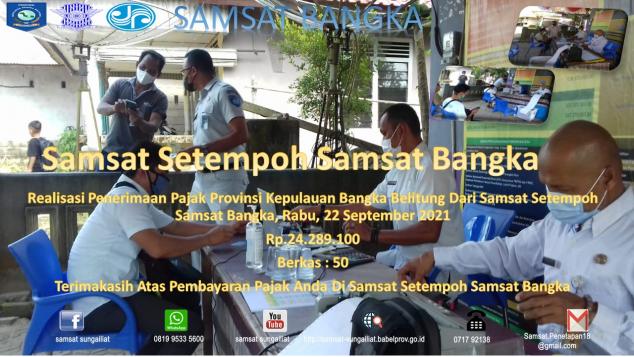 Realisasi Penerimaan Pajak Provinsi Kepulauan Bangka Belitung Dari Samsat Setempoh, Rabu, 22 September 2021