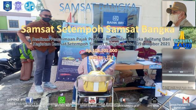 Realisasi Penerimaan Pajak Provinsi Kepulauan Bangka Belitung Dari Samsat Setempoh, Sabtu, 09 Oktober 2021