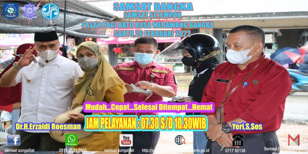 Samsat Setempoh Samsat Bangka Hadir di Pasar Pagi Baturusa Kecamatan Merawang Kabupaten Bangka, Sabtu,26 Februari.#PATUHSAMSATBANGKA