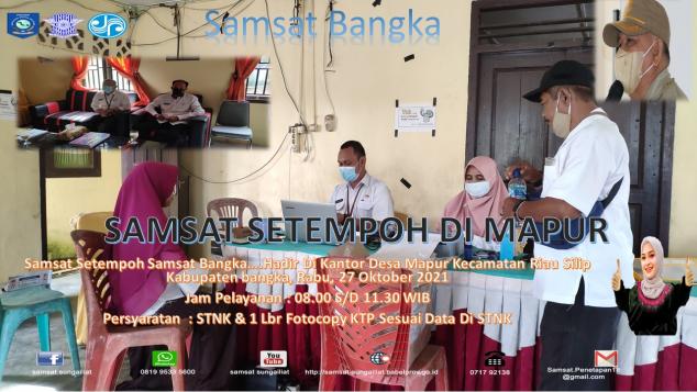 Samsat Setempoh Samsat Bangka..Hadir Di Kantor Desa Mapur Kecamatan Riau Silip Kabupaten bangka, Rabu, 27 Oktober 2021
