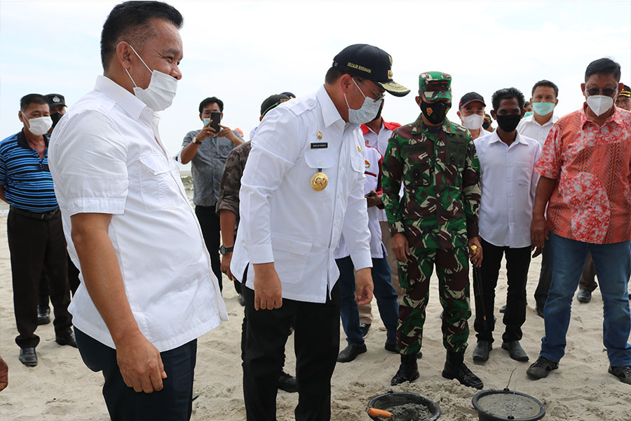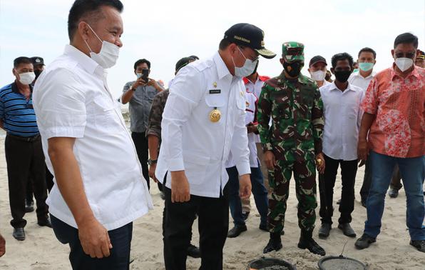 Gubernur Kepulauan Bangka Belitung, Dr.Erzaldi Roesman, S.E, M.M bersama Kapolda Babel, Irjen Pol Anang Syarif Hidayat dan Danrem 045/Garuda Jaya, Brigjen TNI Mateus Jangkung Widyanto menghadiri sekaligus melaksanakan peletakan batu pertama pembangunan talud pengaman ombak di Pantai Pesaren Dusun Pesaren Desa Bintet Kecamatan Belinyu Kabupaten Bangka, Rabu, 09 Juni 2021. Menurut Pak Panca, Satker Balai SDA Babel bahwa Pembangunan Talud Pesaren ini memang merupakan usulan Gubernur Kepulauan Bangka Belitung di Belitung kemarin. Progres pembangunan talud di pantai Pesaren ini sudah 7% dan panjangnya sekitar 150 M.